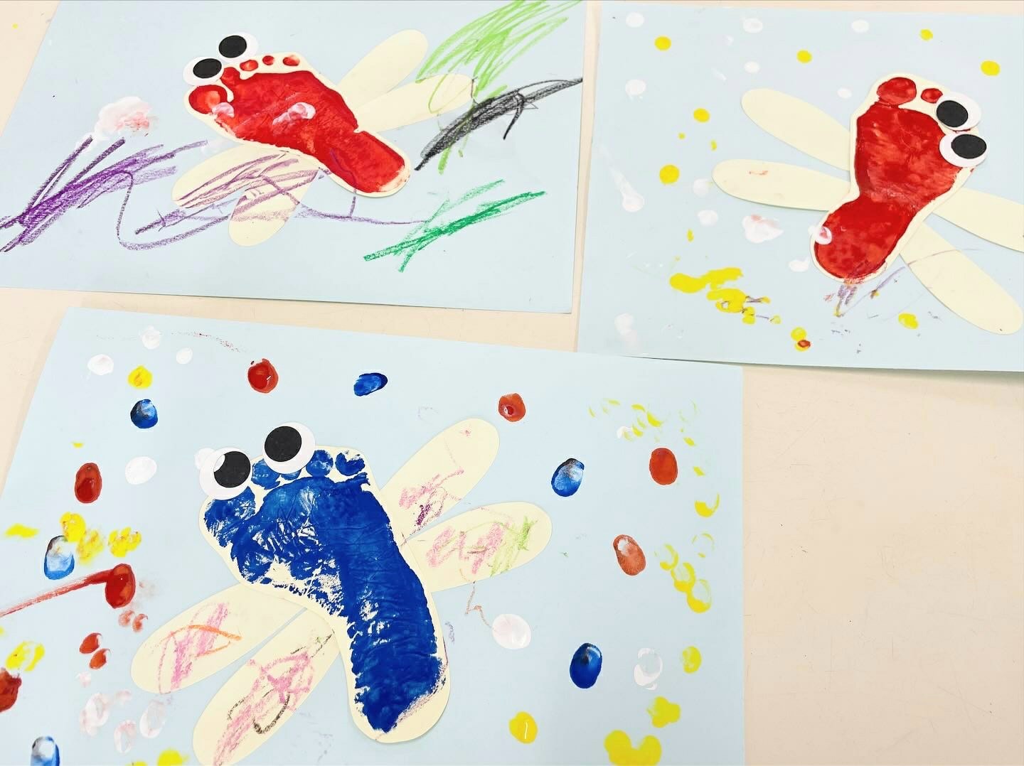 9/22(月) エブリデイ保育(未就園児親子の保育体験)本日は年少クラスのお友だちと製作をしました✨ 足形をぺったん!かわいい足形が、秋の空をスイスイ飛ぶ「とんぼ …