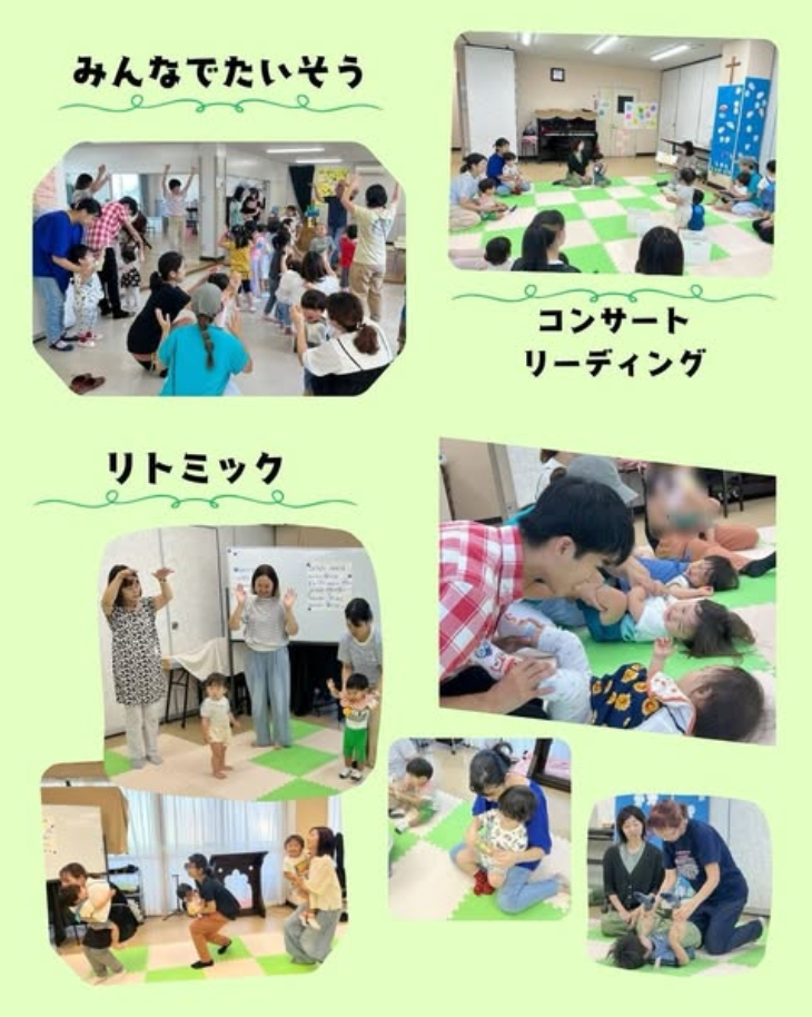 めぐみ幼児園で、園児が楽しんでいるリトミック。ひよこ組の親子も体験させて頂きました。