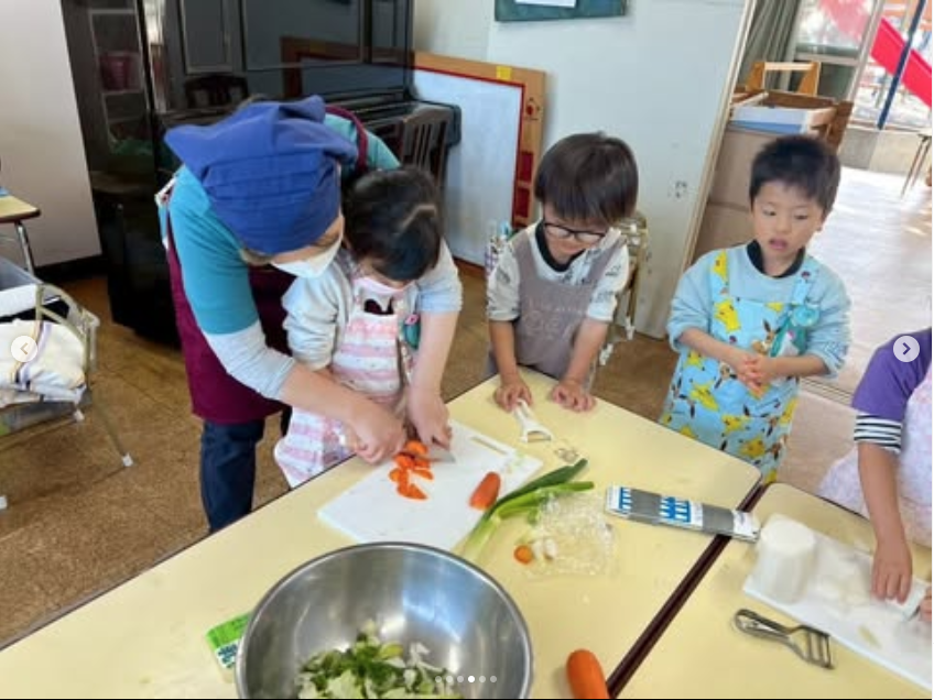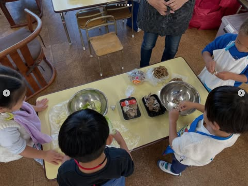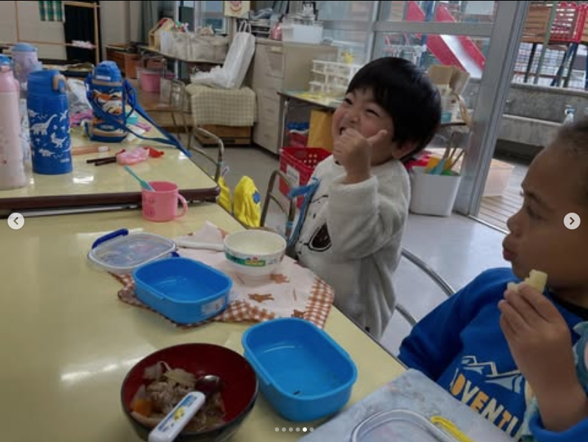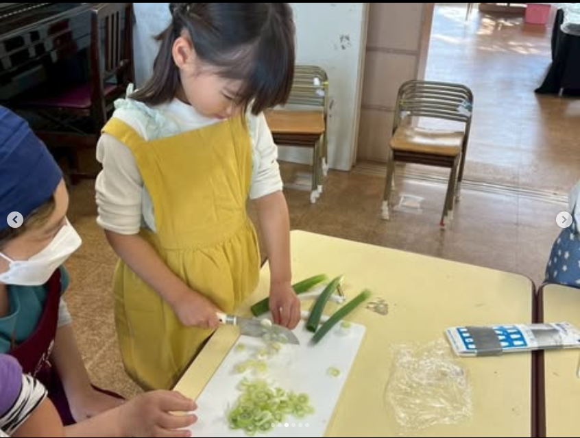 美味しい温かいお味噌汁を作り満2歳児クラスのつぼみ組さん親子も一緒にみんなでいただきました。お家では苦手でもみんなで食べたら美味しかったね。