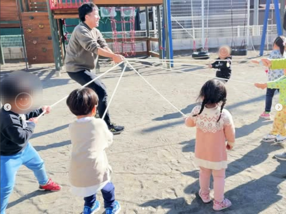 「体操指導のできる臨床心理士」安福創史さんがめぐみ幼児園に来て下さり、縄遊びの時間を持ちました😊