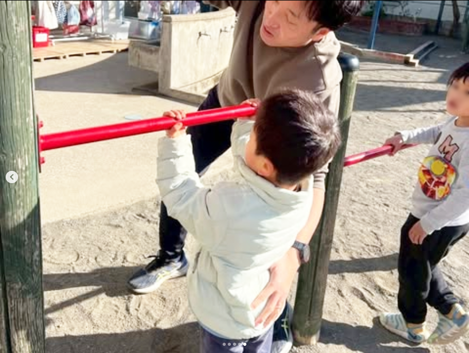 自由遊びの時間には年中、年長組のやりたいお友達で、逆上がりの練習もしました✨