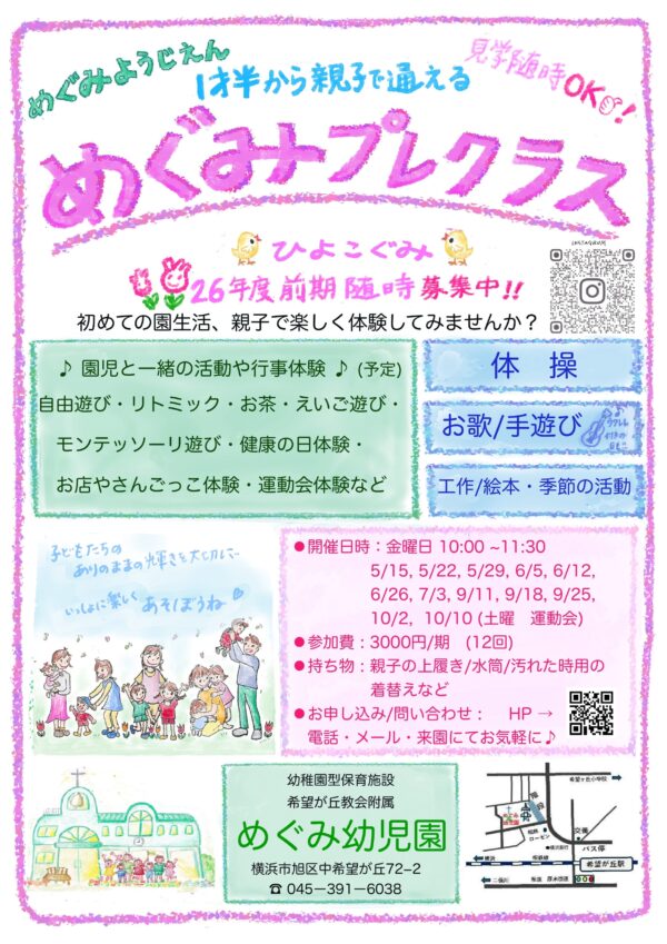 2026年度前期「めぐみプレクラス〜ひよこぐみ」の募集を開始しました